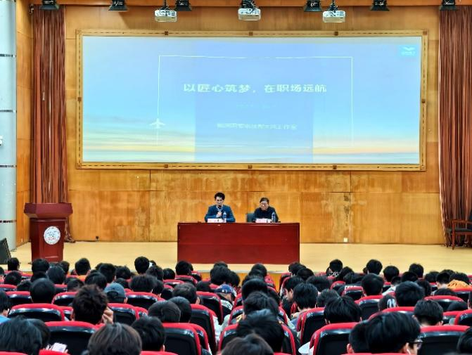 在互动环节,同学们围绕职业发展、技能提升等话题踊跃提问,戴渊老师耐心细致地一一解答,并鼓励大家积极投身航空制造业,为实现个人价值与国家梦想而不懈奋斗。现场气氛热烈,掌声不断,充分展现了同学们对航空事业的热爱与向往。