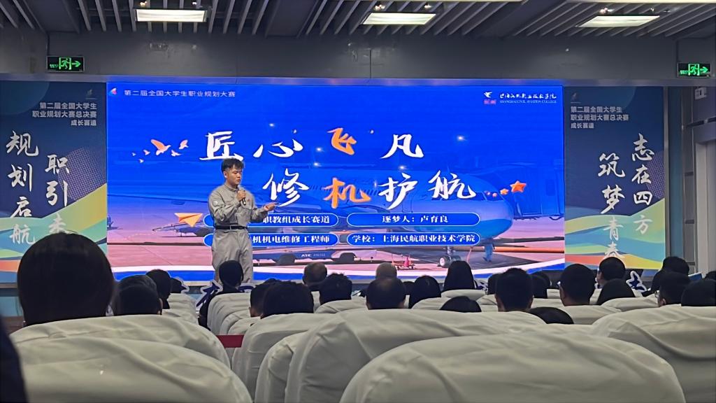 然而,比赛现场并非一帆风顺。在总决赛现场,根据大赛评分机制,每个选手最终总评分是由评委评分与现场心选团企业提供offer加分确定。但是由于我院学子所在组别无任一民航及机械等行业大类企业,offer加分项相对不利,且现场展示PPT播放出现了错误,对选手心理都产生了巨大压力。但我院学子顶住压力,依靠平时扎实的训练和对自身规划内容的深刻理解,在台上镇定自若地继续进行口头阐述,通过生动的语言、丰富的情感和详实的案例来展示自己的职业目标规划之旅。