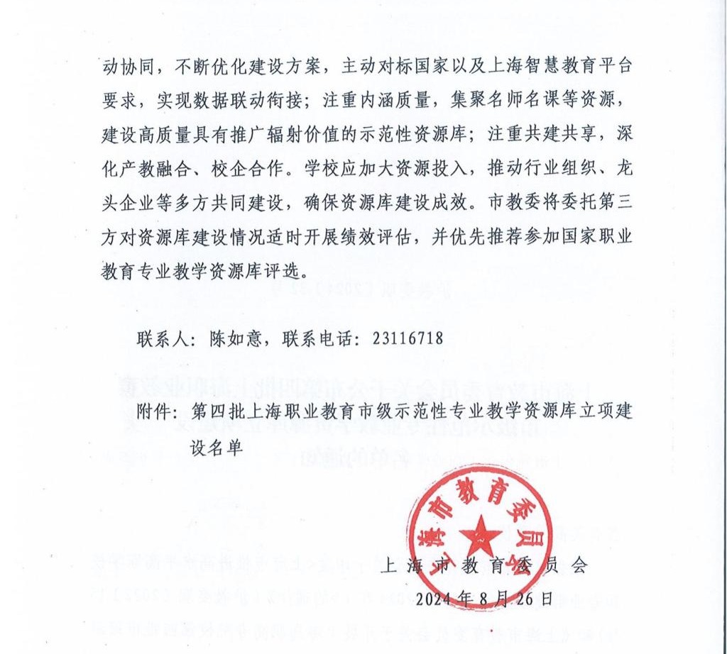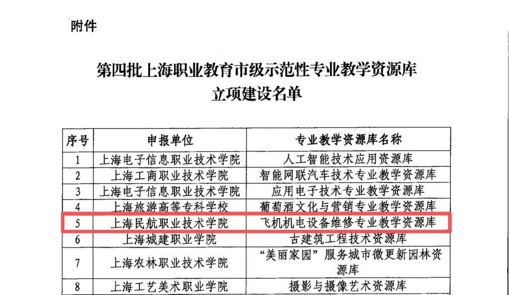 近日,上海市教育委员会正式公布了第四批上海职业教育市级示范性专业教学资源库立项建设名单,“飞机机电设备维修专业教学资源库”被列入全市18个拟立项的专业资源库中,成功获得市级立项建设。