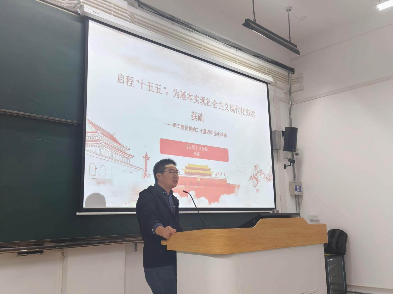 11月6日,飞机制造与维修学院党总支于浦东校区北2107教室顺利开展业余党校基础班第三讲。马克思主义学院李挺老师以“启程“十五五”,为基本实现社会主义现代化夯实基础——党的二十届四中全会精神解读”为主题授课,全体学员全程参与学习。