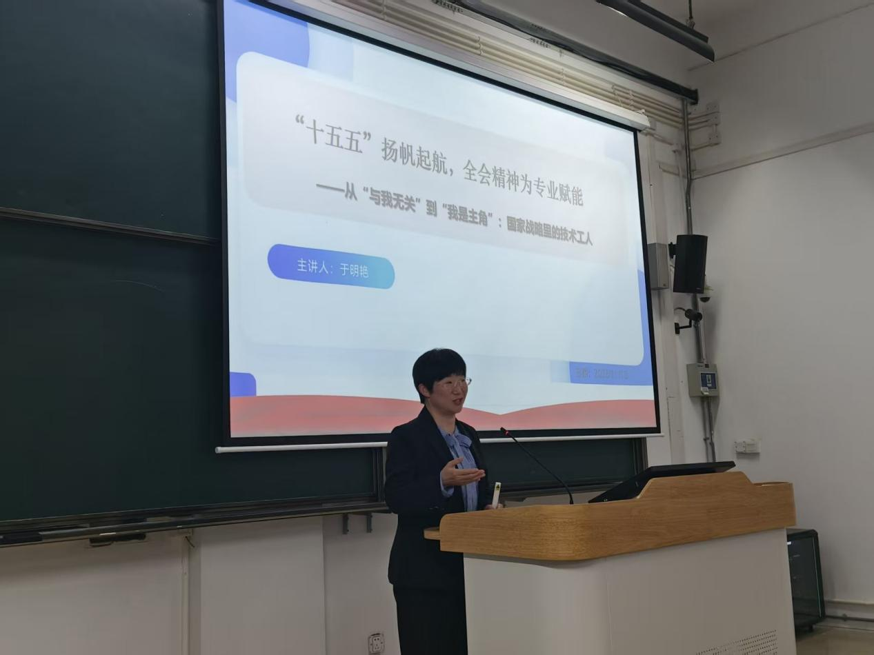 11月13日,飞机制造与维修学院党总支于浦东校区北2107教室顺利开展业余党校基础班第四讲。马克思主义学院于明艳老师以“启程“十五五”,全会精神为专业赋能--从“与我无关”到“我是主角”为主题授课,全体学员参与学习。