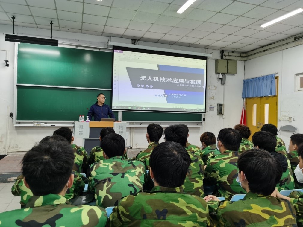2022年11月18号下午,民航维修学院举办了《无人机应用技术》专业22级学生的专业教育,邀请上海瀚动浩翔航空科技有限公司董事长陈光文进行了《无人机技术应用与发展》讲座。专业教育由航空器适航教研室主任高军主持,全体2246101班学生和辅导员谭夏萍参加。