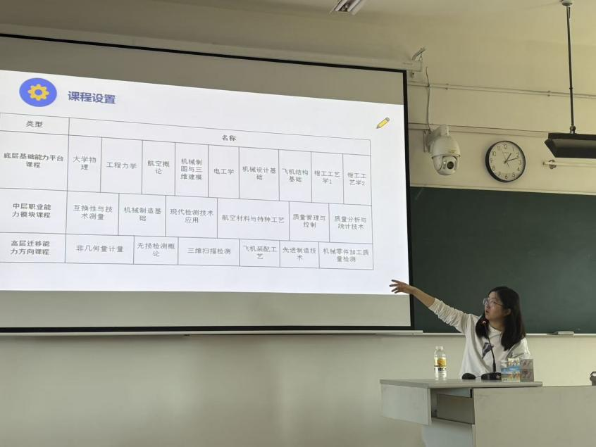 她通过三坐标测量技术、无损检测技术等案例,结合检测设备模型演示,让学生直观理解专业技能应用场景。“未来5年,三坐标测量、无损检测等领域人才缺口将超10万人。”王老师鼓励新生把握行业机遇,通过“理论+实践+考证”模式成长为高素质技术技能人才。