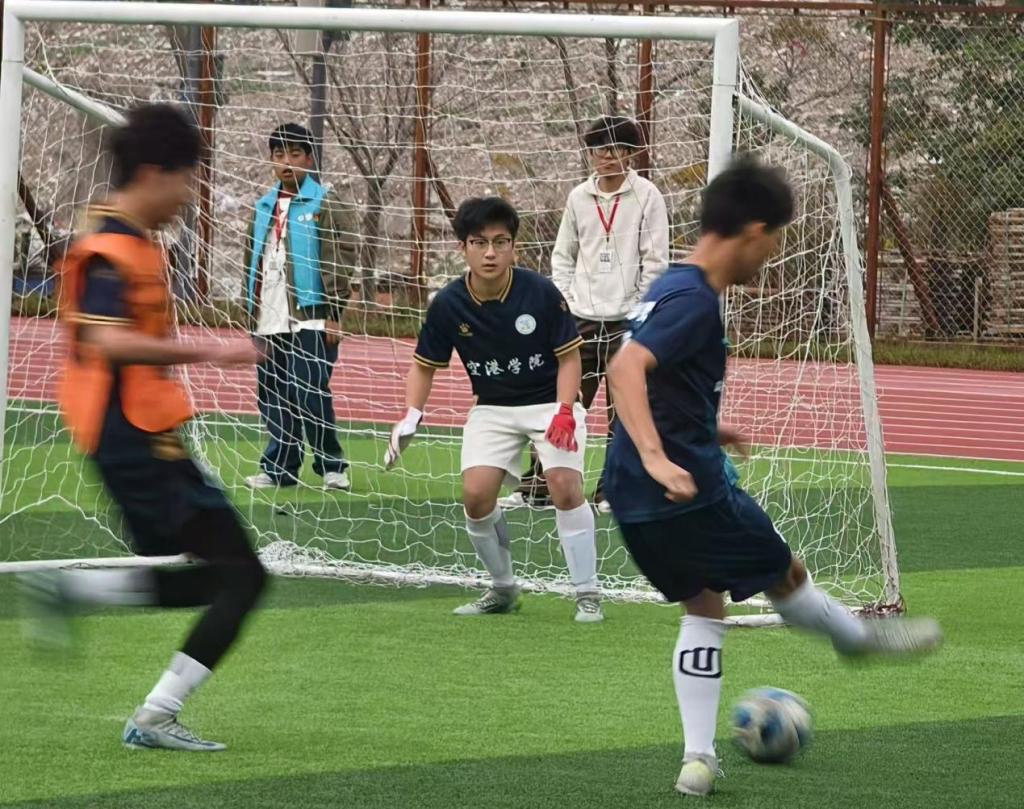 决赛中,民航乘务学院攻势势如破竹,队员配合默契、跑位灵动,多次精准传球与劲射洞穿球门;空港管理学院凭借稳健组织与顽强斗志发起反击,成功攻入三球。