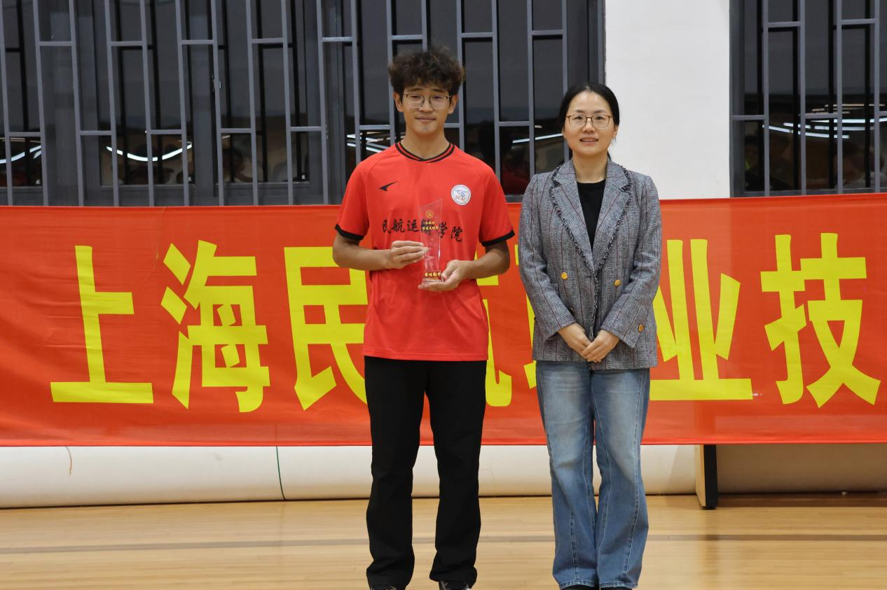 飞机制造与维修学院党总支副书记徐添为季军队伍颁发奖杯